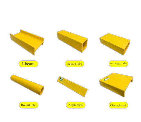 Υπάρχουν πολλά είδη προφίλ FRP pultrusion, γυάλινη ίνα ενισχυμένο πλαστικό στρογγυλό σωλήνα, γυάλινη ίνα ενισχυμένο πλαστικό τετραγωνικό σωλήνα, γυάλινη ίνα ενισχυμένο πλαστικό ορθογώνιο σωλήνα,πλαστική μπάρα ενισχυμένη με γυάλινες ίνες, πλαστική δέσμη I ενισχυμένη με γυάλινες ίνες.